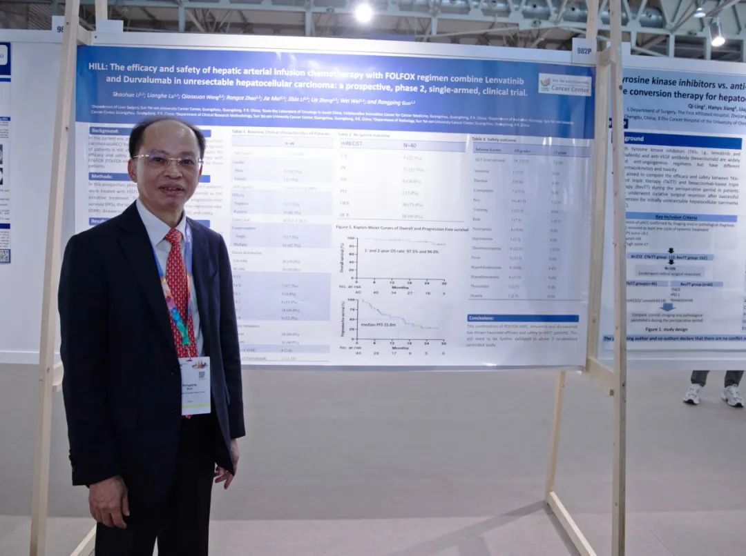 编者按:HIMALAYA等研究的公布,引领着晚期肝癌进入双免治疗时代。而中国肝癌患者中晚期居多,如何优选包括度伐利尤单抗在内的系统治疗联合局部治疗方案,从而进一步改善患者获益,成为目前的研究热点。2024年欧洲肿瘤内科学会(ESMO)年会于9月13日至17日在西班牙巴塞罗那召开,中山大学附属肿瘤医院郭荣平教授团队的HILL研究入选大会壁报展示(982P),结果证实,通过度伐利尤单抗联合仑伐替尼和HAIC治疗,2年OS率高达94%且临床副作用较小,为晚期肝癌患者贡献了中国智慧与力量。《肿瘤瞭望》特邀郭荣平教授进行深度分享。