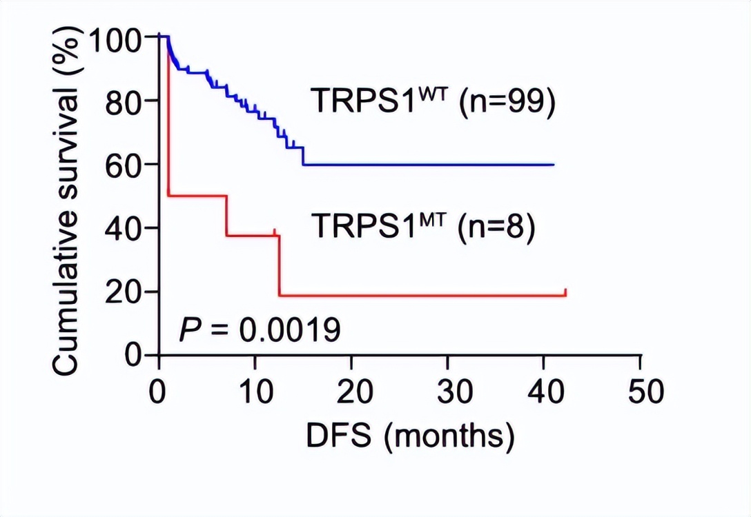 图2 TRPS1突变人群DFS、OS更差