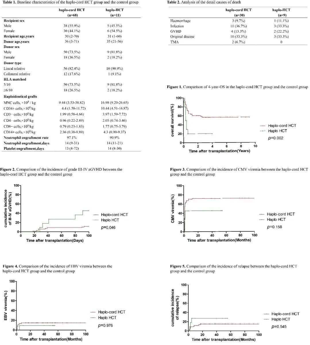挽救性单倍体造血干细胞移植联合非血缘脐带血相较于不不加用脐带血组,能显著提升未缓解状态急性髓系白血病患者的长期生存率、降低III-IV度aGVHD的发生,使患者最终受益。同时在病毒感染、移植后复发方面,二者表现差异不大。