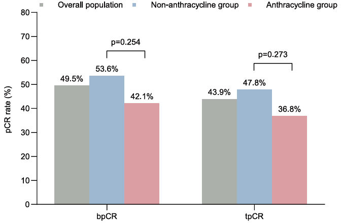 △含蒽环组和非蒽环组患者的tpCR率和bpCR率