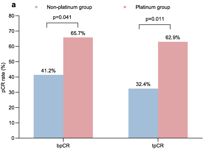△非蒽环组患者中,紫杉治疗周期亚组和铂类亚组的tpCR率和bpCR率