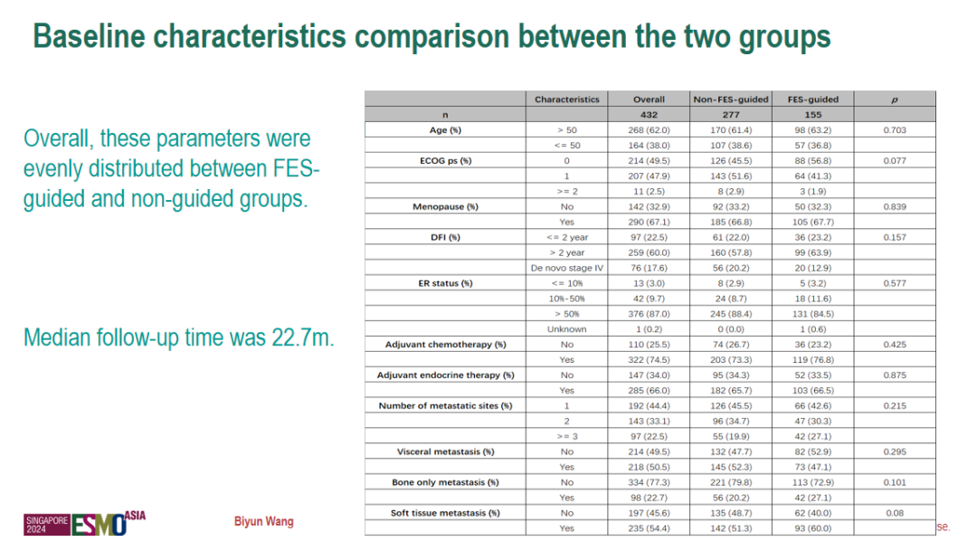 王碧芸教授:在该项研究中,我们回顾性分析了复旦大学附属肿瘤医院2020~2023年诊断为HR+/HER2-MBC患者的病历资料。纳入了432例CDK4/6i联合ET(内分泌治疗)或CT(化疗)一线治疗前18FES-PET/CT筛查或未筛查的患者。