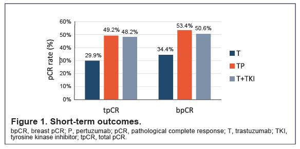 随着帕妥珠单抗(P)于2019年在中国获批,P+曲妥珠单抗(T)+化疗已成为HER2+早期乳腺癌治疗的标准疗法。多个国际多中心研究显示,HER2阳性乳腺癌中,新辅助治疗后HR阴性患者的病理完全缓解率(pCR)明显高于HR阳性患者。在中国的真实世界诊疗中,HR+/HER2+乳腺癌患者的人群分布比例和治疗模式尚不清楚。