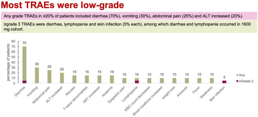 1200 mg被选为后续剂量扩展阶段的推荐剂量,后续研究将进一步评估其疗效和安全性。