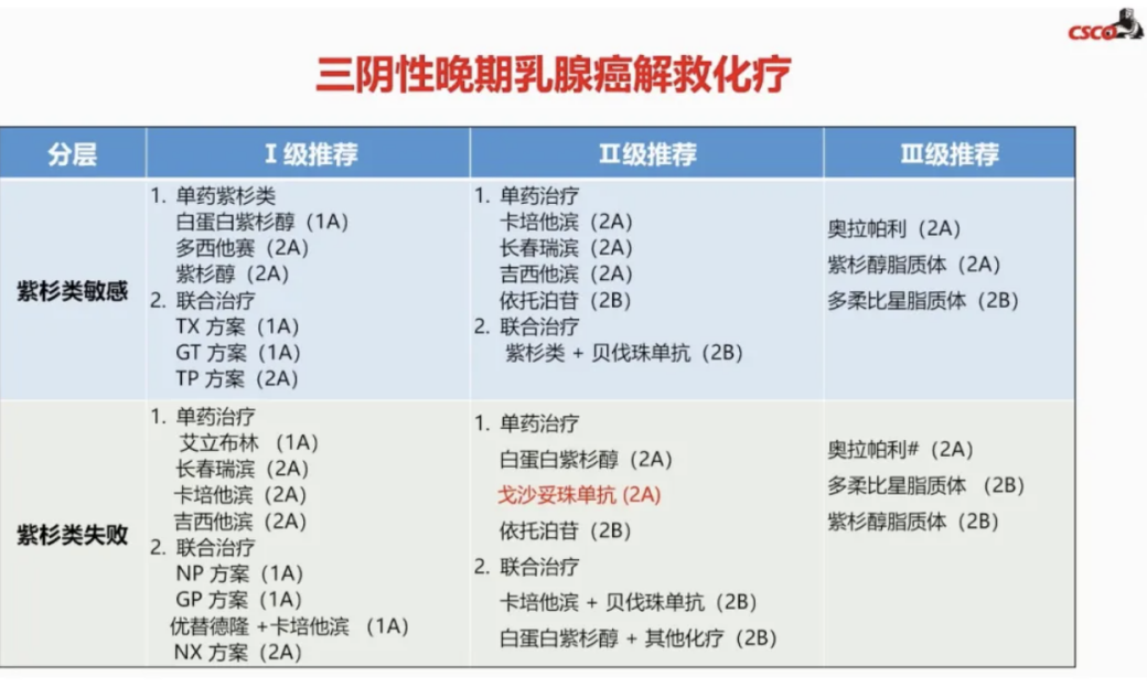 ABC6/7指南推荐SG用于一线治疗进展后的mTNBC(1A)