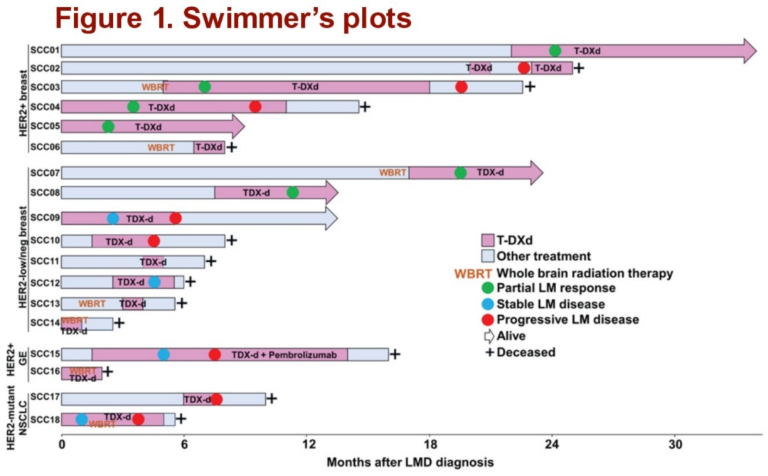 △该研究T-DXd治疗软脑膜转移患者的游泳图