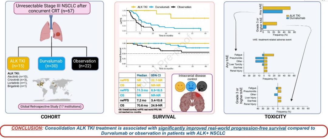 研究题目:不可手术的III期非小细胞肺癌患者,同步放化疗后给予ALK-TKI、度伐单抗及临床观察的结局