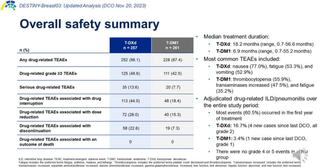[5]、Cortés,Javier et al.“Trastuzumab deruxtecan versus trastuzumab emtansine in HER2-positive metastatic breast cancer:long-term survival analysis of the DESTINY-Breast03 trial.”Nature medicine vol.30,8(2024):2208-2215.doi:10.1038/s41591-024-03021-7
