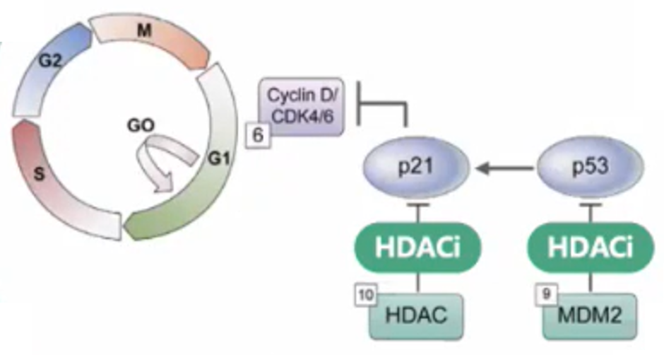 由此可见,HDAC广泛参与乳腺癌内分泌治疗和细胞周期治疗的相关耐药机制,抑制HDAC是延缓内分泌治疗和CDK4/6i耐药的重要策略。