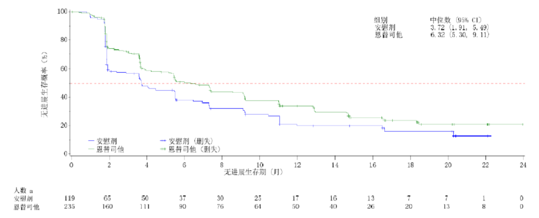 在安全性方面,恩替司他常见的≥3级血液学不良事件为中性粒细胞减少症(43.8%)、血小板减少症(8.5%)和白细胞减少症(6.4%),这些不良事件的发生率在数值上低于既往HDACi报道的发生率[18];此外,恩替司他最常见≥3级非血液学治疗相关不良事件是天门冬氨酸氨基转移酶(AST)升高(2.6%)。