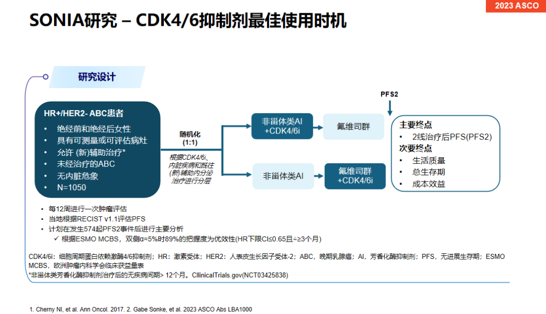 《肿瘤瞭望》:CDK4/6抑制剂联合内分泌治疗已成为HR阳性晚期乳腺癌一线治疗的优选方案。然而今年发表在《自然》杂志的SONIA研究结果却提示,一线使用CDK4/6抑制剂与二线使用相比,没有统计学或临床相关的获益,同时还会大幅度增加医疗费用、带来更多不良反应。您如何评价该研究?对于CDK4/6抑制剂的使用时机,您有何看法?