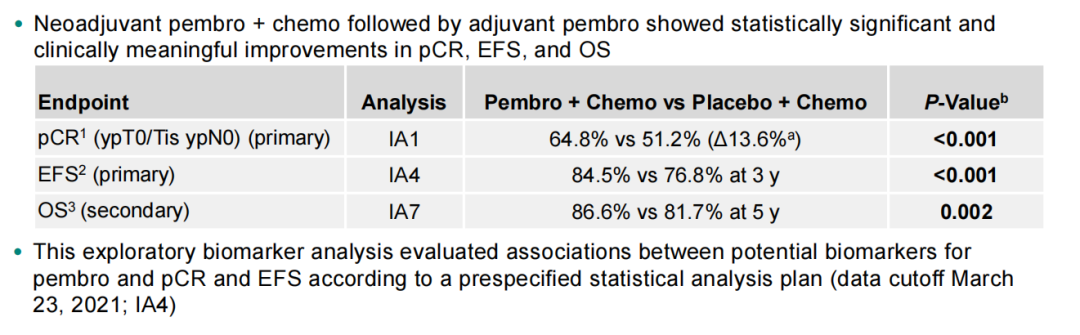So actually,since the ESMO-2024,we have the overall survival data at five years for the KEYNOTE-522,and at this San Antonio meeting,we have further updates with regard to potential biomarkers as presented by Joyce O’Shaughnessy,and actually,it was noted that T cell inflammatory gene expression profile seemed to have some prognostic value in terms of complete pathological response rate and event-free survival for pembrolizumab.Yet,there is not predictive with regard to response to pembrolizumab.What’s more,there is also association of tumor mutation burden with regard to the use of pembrolizumab.