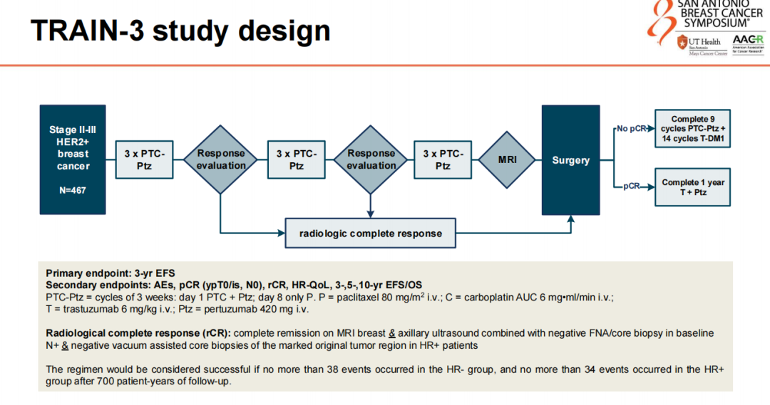 This is further consolidated and supported by the TRAIN-3 study,which is a phase two study presented by our Netherlands colleagues at one of the rapid fire session at San Antonio.Basically,very similar.So,patients are actually monitored with zero image-guided optimisation,with the use of better neoadjuvant chemotherapy.When patients could achieve early complete pathological response as evidenced by image guidance,and also repeated core biopsy,they could,again,go straight to upfront definitive surgery.This is actually focused on stage two,HER2 positive breast cancer women in the context of the TRAIN-3.Of course,the data needs further consolidation with prospective clinical trials in the context of phase three trials.But from what we have learned,probably there is one day,or at least a subset of patients,who could actually be spared from chemotherapy.At least,not just to the negative breast cancer patients,but perhaps HER2-positive disease.