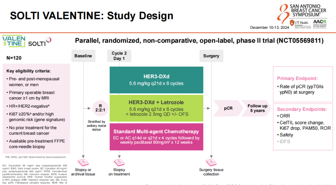 Furthermore,for HER2-negative hormone-positive disease,I think there is also added value of upcoming new ADCs,antibody drug conjugates.And one of the phase two data presented by Mafalda and her team from the SOLTI VALENTINE trial is also showing added value of HER3-DXd with or without letrozole.And actually,women who are actually put on the tested arm,they have less side effects and better compliance,and also better clinical outcome.This is also showing added value of upcoming ADCs,and with a plethora of the added value and clinical significance of ADCs.