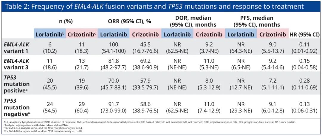无论EML4-ALK变异体类型以及是否合并TP53突变,洛拉替尼均能为ALK+NSCLC患者带来获益。