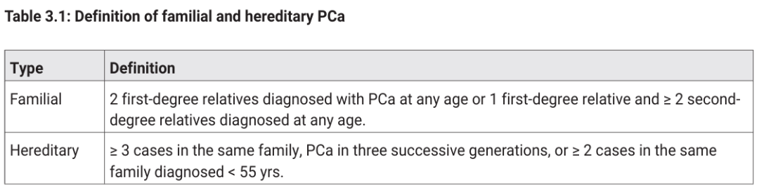 增加表3.1:家族性和遗传性前列腺癌的定义。