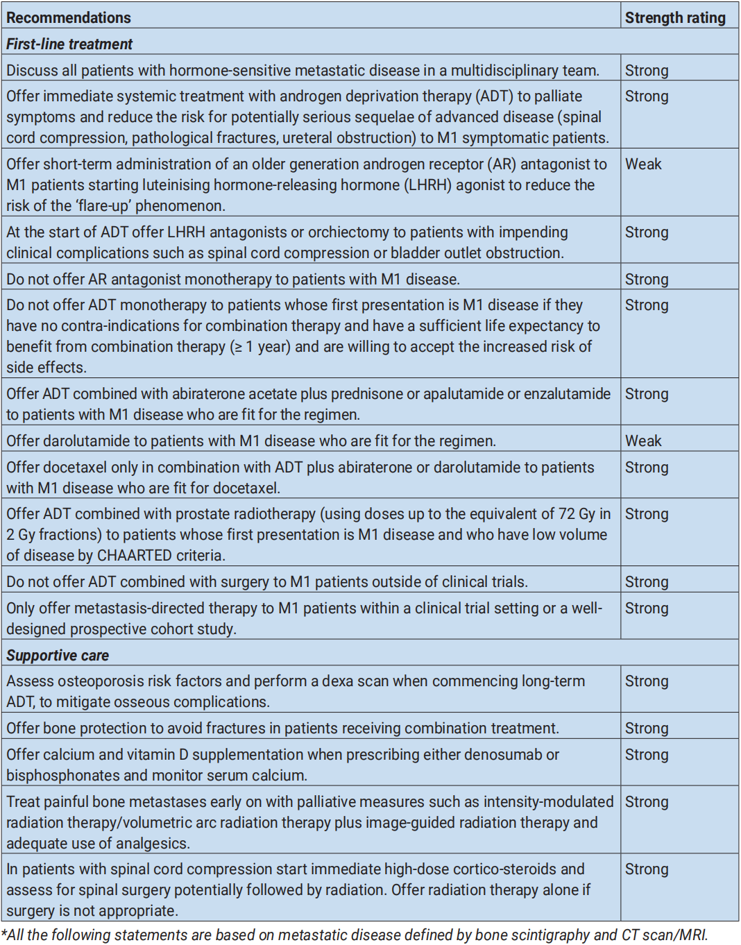 第6.6.9节-激素敏感性转移性疾病一线治疗建议中关于在多学科团队中讨论所有激素敏感性转移性疾病患者的新建议。