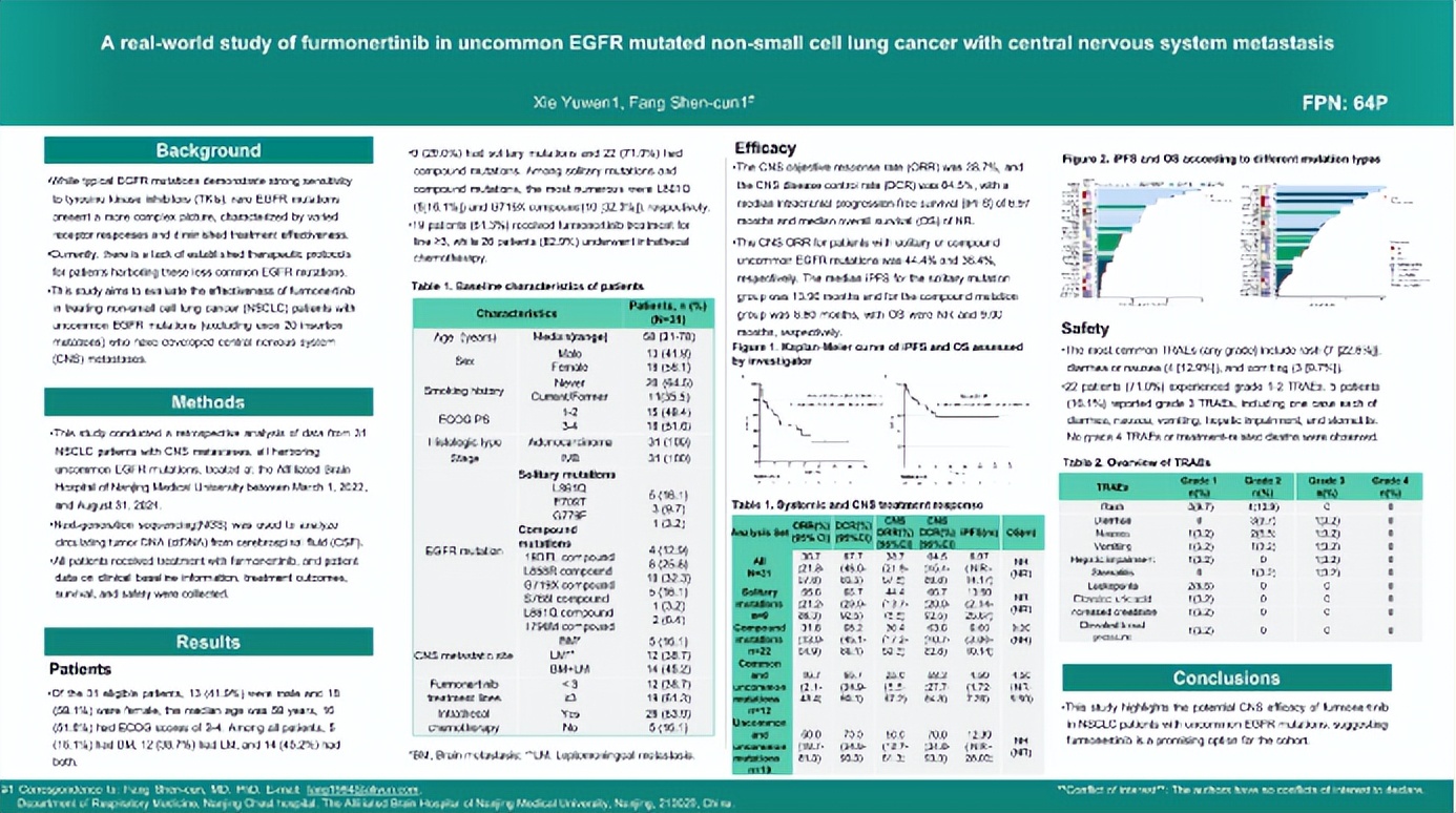 摘要64P:伏美替尼治疗罕见EGFR突变非小细胞肺癌伴中枢神经系统转移的真实世界研究