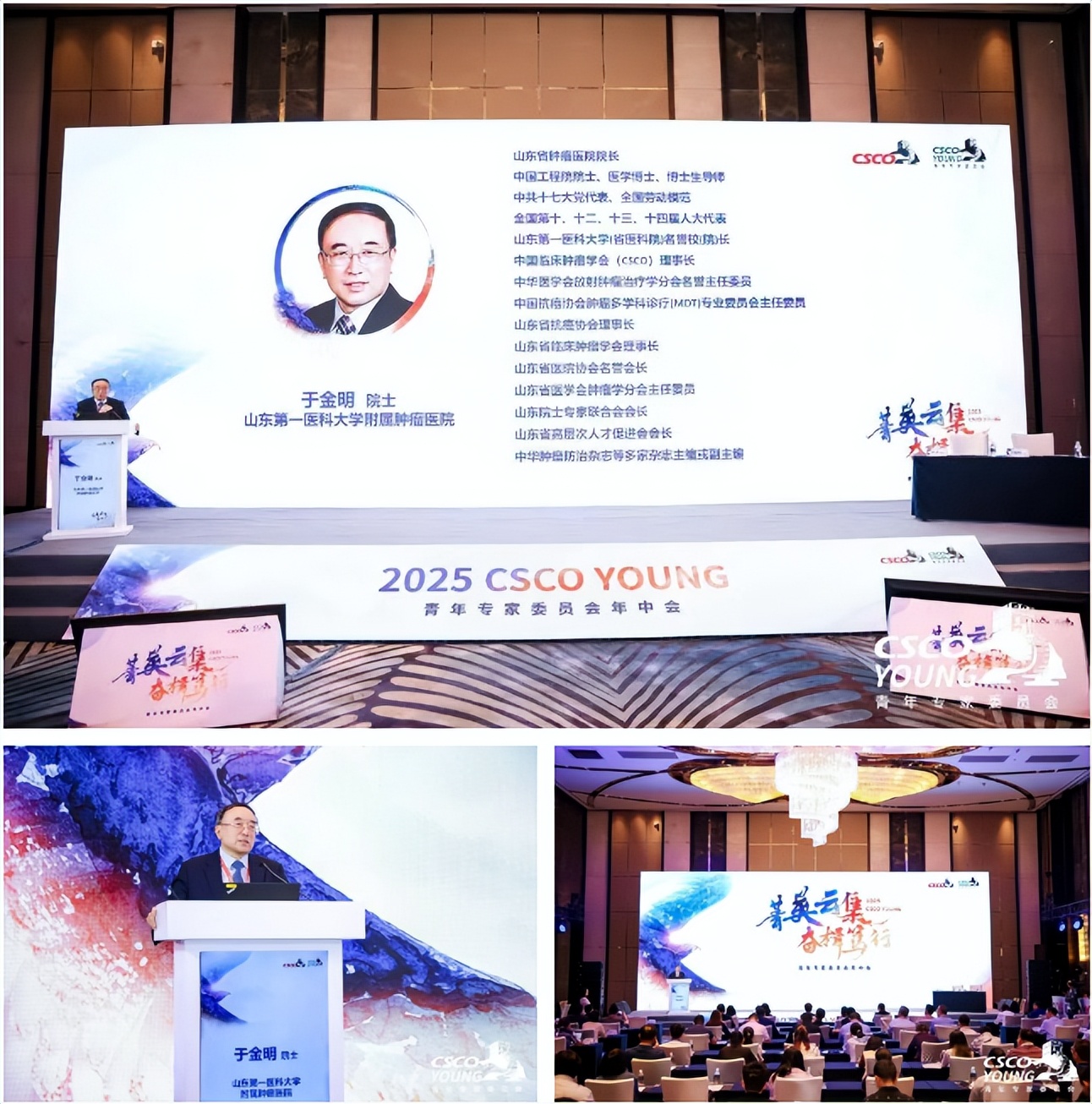 编者按:近日,2025年中国临床肿瘤学会(CSCO)青年专家委员会年中会在上海成功举办,会议汇聚了全国肿瘤领域青年菁英,聚焦肺癌、乳腺癌及胃肠肿瘤等前沿议题,旨在分享最新研究成果与临床经验,搭建协作平台,推动肿瘤医学创新发展。会上,CSCO理事长、山东省肿瘤医院院长于金明理事长围绕“肿瘤精准免疫新挑战”话题发表了精彩演讲。在与我们的采访中,于金明理事长深入剖析了当前免疫治疗在疗效优化与毒性最小化方面面临的关键瓶颈,并强调通过推动生物标志物检测等关键技术创新寻求突破;同时,他寄语青年一代研究者,要胸怀超越之志、聚焦研究方向、秉持刻苦精神并强化团队协作,方能肩负起攻克肿瘤、造福患者的时代重任。
