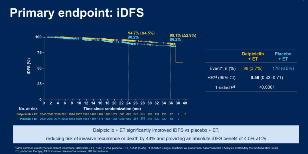 今年ASCO大会上,HR+/HER2-早期乳腺癌治疗领域公布了多项研究结果。NATALEE研究亚组分析结果(摘要号:516)表明,无论患者绝经状态和年龄如何,经过长时间随访,瑞波西利+NSAI均可为II/III期HR+/HER2-早期乳腺癌患者带来生存获益。邵志敏教授报告的DAWNA-A研究结果(摘要号:515)显示,对于淋巴结阳性的高危人群,达尔西利+ET辅助治疗能显著延长HR+/HER2-早期乳腺癌患者的iDFS。这意味着未来对于这类患者的辅助治疗,我们有了更多选择。