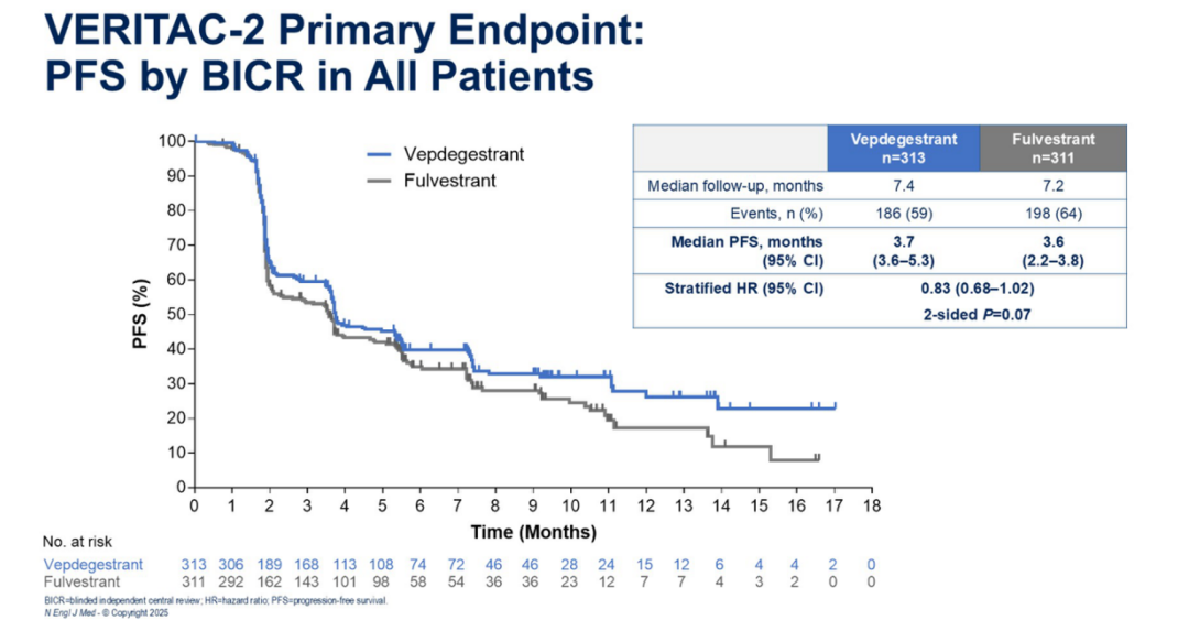△VERITAC-2研究主要终点:BICR评估的ESR1突变人群和总人群的PFS