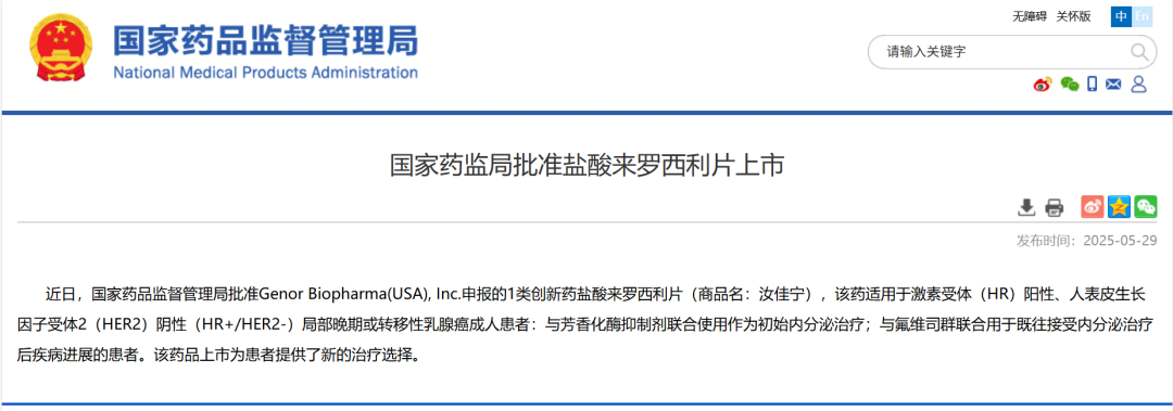[2]Xu B,Zhang Q,Luo Y,et al.Lerociclib plus fulvestrant in patients with HR+/HER2-locally advanced or metastatic breast cancer who have progressed on prior endocrine therapy:LEONARDA-1 a phase III randomized trial.Nat Commun.2025;16(1):716.Published 2025 Jan 16.doi:10.1038/s41467-025-56096-2