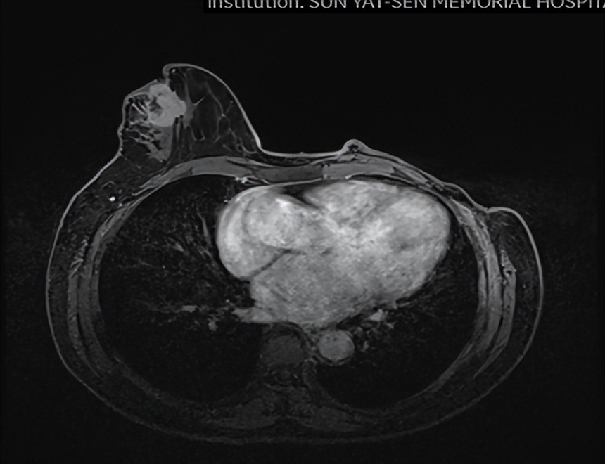 2023年1月患者发现右乳肿物伴右乳头内陷。2023.4.13我院就诊: