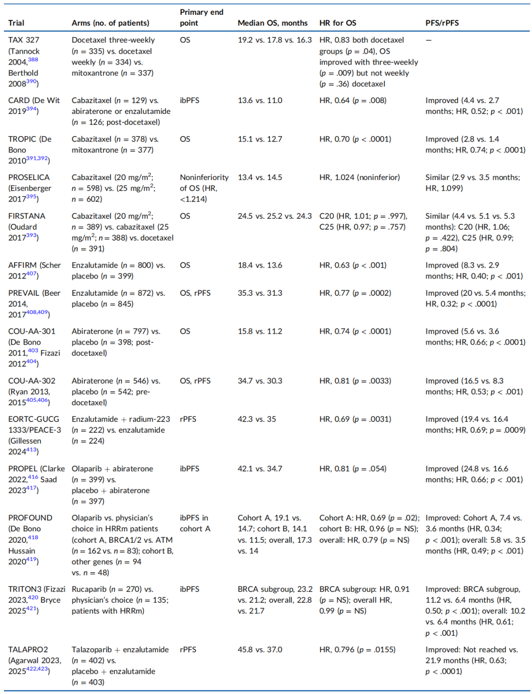 编者按:前列腺癌是全球三分之二国家最常见的癌症,预计未来二十年内其发病率和死亡率都将翻倍。过去三十年,前列腺癌的诊疗快速发展,包括多参数磁共振成像(mpMRI)、PET检查、机器人手术、影像引导的大分割与立体定向放疗、新型抗雄激素药物以及放射性配体治疗等。近日,素有“神刊”之称的《临床医师癌症杂志》(CA A Cancer J Clinicians,2025年最新IF=232.4)发表的一篇综述,系统介绍了前列腺癌的诊疗现状。本文总结复发或转移性前列腺癌(以延长生存为主)的治疗进展。