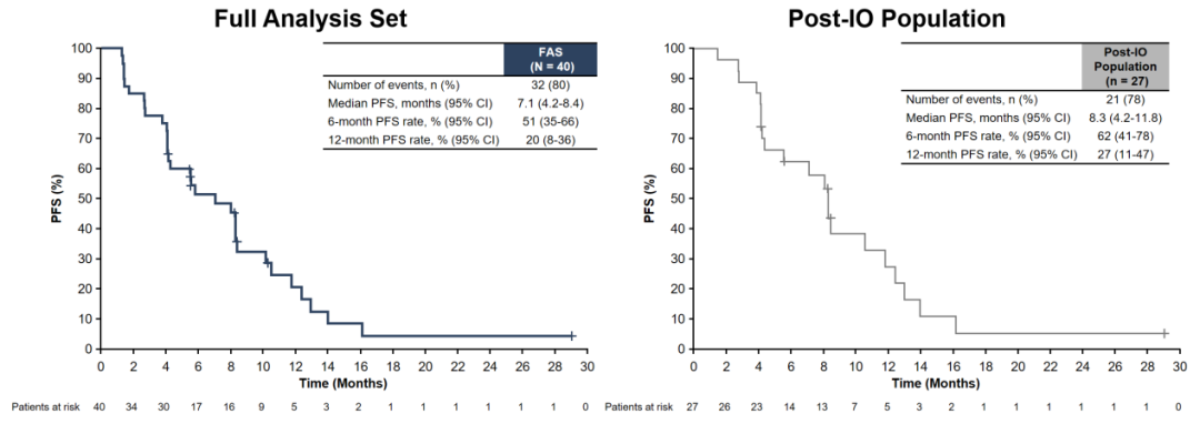 这是一项多中心、单臂、多队列、开放标签的II期临床试验,宫颈癌队列入组了40例对铂类及紫杉类耐药或不耐受的r/mCC患者(全体患者,FAS),其中27例(68%)既往接受过免疫治疗(Post-IO)。
