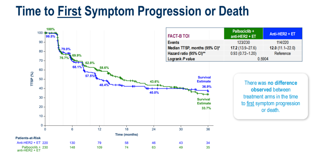III期PATINA试验(AFT-38;NCT02947685)评估了在HR+/HER2+转移性乳腺癌患者接受基于HER2的化疗后,在维持期HER2靶向治疗和内分泌治疗(ET)基础上加用哌柏西利的效果。加用哌柏西利将中位无进展生存期(mPFS)改善了15.2个月(风险比HR:0.74),且毒性可控。本次报告该试验预设的HRQoL结果。