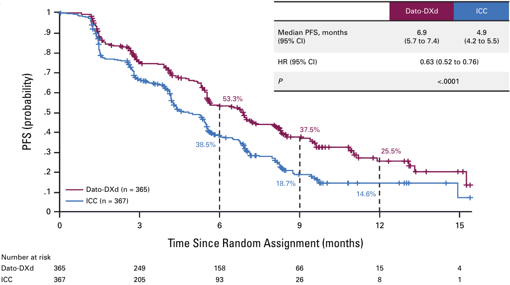 [4].Bardia A,Jhaveri K,Im S-A,De Laurentiis M,Xu B,Pernas S,et al.Abstract GS02-01:Randomized phase 3 study of datopotamab deruxtecan vs chemotherapy for patients with previously-treated inoperable or metastatic hormone receptor-positive,HER2-negative breast cancer:Results from TROPION-Breast01.Cancer Res.(2024)84:GS02–01.