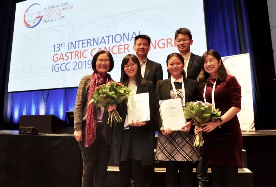 在本次大会中,北京大学肿瘤医院消化肿瘤内科团队共5篇投稿获邀参加壁报展示,其中3篇获得大会最佳壁报,沈琳教授的博士生陈祖华和黄文雯获得“Young Investigator Awards”。本届大会中,团队主要从PD-1抗体联合化疗或阿帕替尼在晚期胃癌一线治疗中的疗效与安全、恶性腹水来源的外泌体在晚期胃癌中的促腹膜转移作用、弥漫型胃癌的蛋白组学分型、基于人源化胃癌移植瘤模型的靶向药物获得性耐药机制以及基于ctDNA全基因组测序的拷贝数不稳定性水平对药物疗效的预测和监测等方面做了精彩展示。