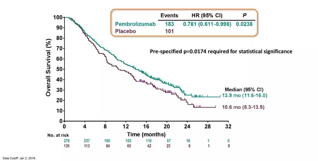 图4. KEYNOTE-240研究OS结果(2019ASCO;abs.4004)