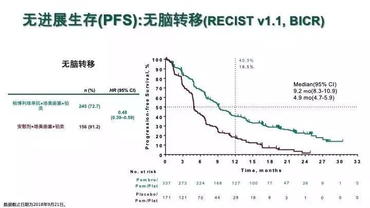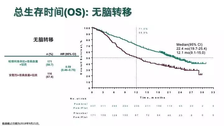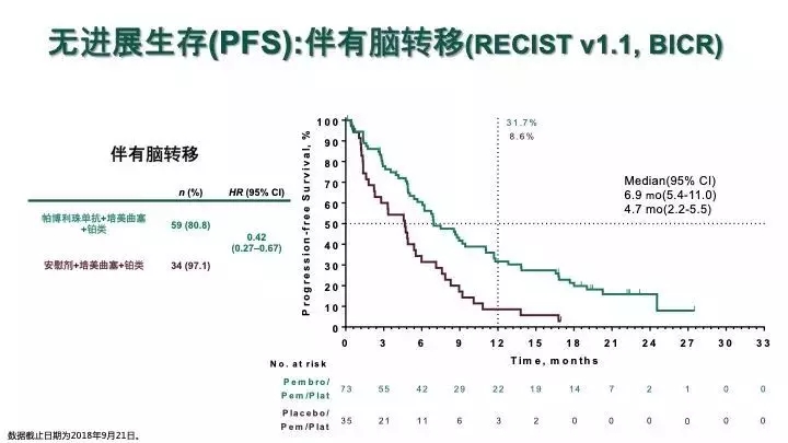 图5:Keynote189研究中无脑转移患者的中位PFS和OS