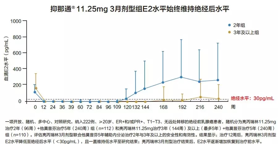 刘强教授:对于辅助内分泌治疗采用他莫昔芬+OFS的患者,专家组一致推荐GnRHa可采用1月或3月给药方式。GnRHa 3月剂型与他莫昔芬联用,专家组成员一致支持,即使偶尔发生去势逃逸,雌激素水平也不会上升太高;如果与AI联合使用,我们会更加谨慎一些,OFS治疗期间必须严密监测OFS药物对雌激素的抑制水平。