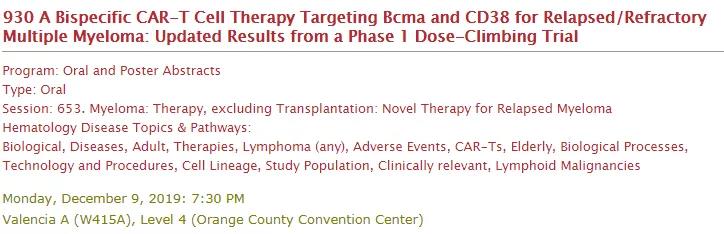同时靶向BCMA及CD38的双特异性CAR-T用于治疗复发/难治多发性骨髓瘤——剂量爬坡的I期研究