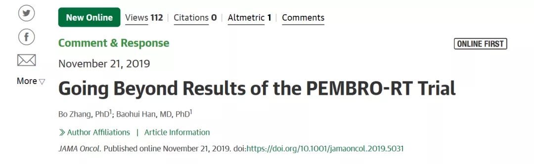 编者按:免疫检查点抑制剂(ICIs)为驱动基因阴性的晚期非小细胞肺癌(NSCLC)患者提供了重要的治疗手段,单药或与化疗联合是这部分患者全新的一线标准治疗。除联合化疗外,联合放疗是否能进一步增强疗效、安全性又如何?近期,JAMA Oncology杂志发表了一项名为“Pembro-RT”的前瞻性研究,对Pembrolizumab联合放疗的疗效及安全性进行分析。来自上海市胸科医院呼吸内科的韩宝惠教授团队对文章进行了评论并刊发于JAMA Oncology杂志。《肿瘤瞭望》特邀韩宝惠教授对文章进行解读。