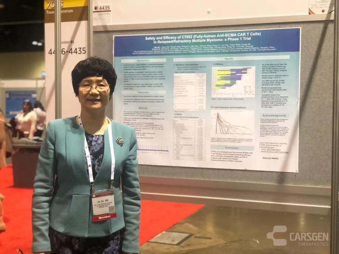 编者按:2019年12月7~10日,第61届美国血液学会(ASH)年会在美国奥兰多盛大召开,来自世界各地的3万余名血液学专家及学者汇聚于此,共同交流及探讨血液领域的新进展,助力血液疾病诊疗水平的提高。当地时间12月9日,浙江大学医学院附属第一医院金洁教授代表浙江大学医学院附属第一医院、温州医科大学附属第一医院、上海交通大学医学院附属新华医院三个研究中心通过壁报展示的形式在本次ASH年会上展示了题为“Safety and Efficacy of CT053 (Fully-human Anti-BCMA CAR-T Cells) in Relapsed/Refractory Multiple Myeloma: a Phase 1 Trial”的研究结果。《肿瘤瞭望》特邀请金洁教授对此研究的进一步更新数据进行介绍,以惠及各位读者。