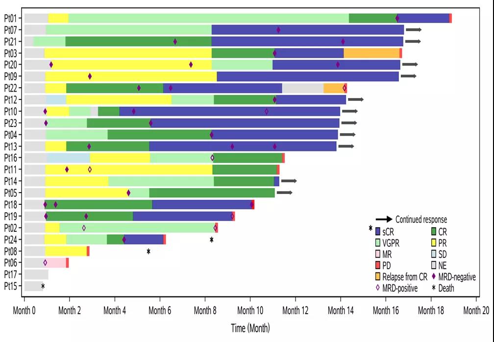 2018年12月第60届ASH上,研究团队首次报告了该临床试验结果而备受瞩目;2019年9月,在第17届国际多发性骨髓瘤研讨会(IMW)上,研究团队报告了该研究结果的更新。本届ASH报告了该研究的进一步的数据更新。