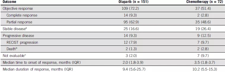 图1. 奥拉帕尼组和化疗组患者客观反应情况