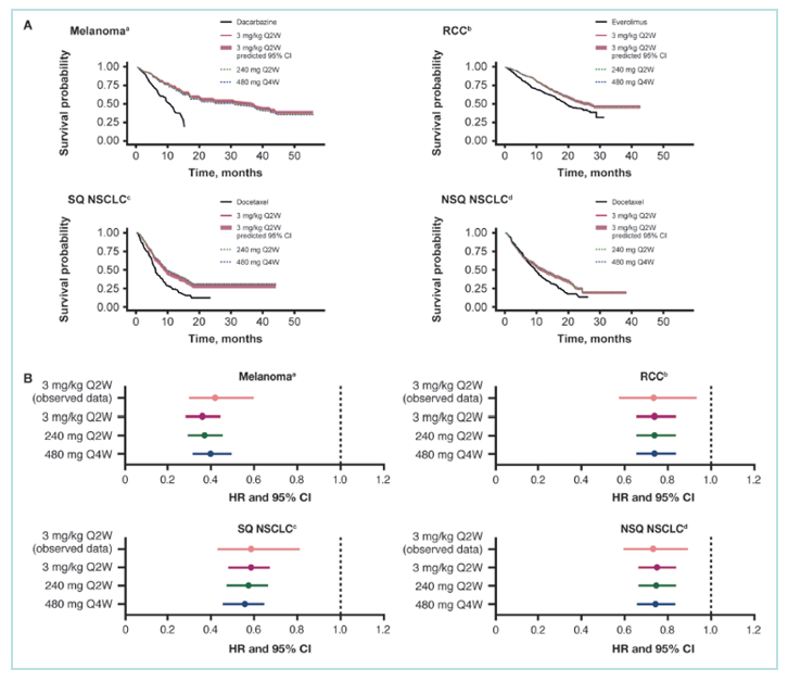 2、Zhao X, Shen J, Ivaturi V, Gopalakrishnan M, Feng Y, Schmidt BJ, Statkevich P, Goodman V, Gobburu J, Bello A, Roy A, Agrawal S. Model-based evaluation of the efficacy and safety of nivolumab once every 4 weeks across multiple tumor types. Ann Oncol. 2020 Feb;31(2):302-309. doi: 10.1016/j.annonc.2019.10.015. Epub 2019 Dec 9.