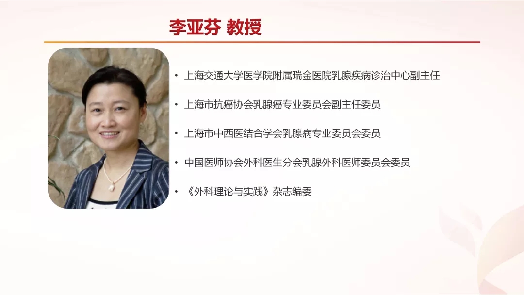 李亚芬教授:早期乳腺癌患者在手术后,基于分子亚型和复发风险选择内分泌治疗、化疗及放疗等不同的辅助治疗方案,按照规定时间进行治疗,如果不能及时到接受手术的医院进行治疗,可以对接到基层医院进行规范化辅助治疗。瑞金医院有多学科联合讨论制定治疗方案的机制,按照指南推荐并结合医生个人经验进行患者治疗方案的制定,基层医院可以通过与患者接受手术的医院进行联合会诊,以保证患者得到规范有效治疗。