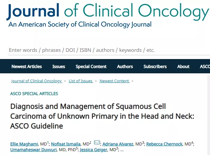 ASCO发布了原发灶不明的头颈部鳞癌诊疗指南,该指南由国际专家小组制定,