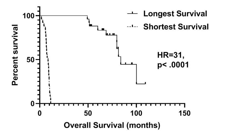 图1. 生存期最短和最长的BRAF V600E mCRC队列的OS
