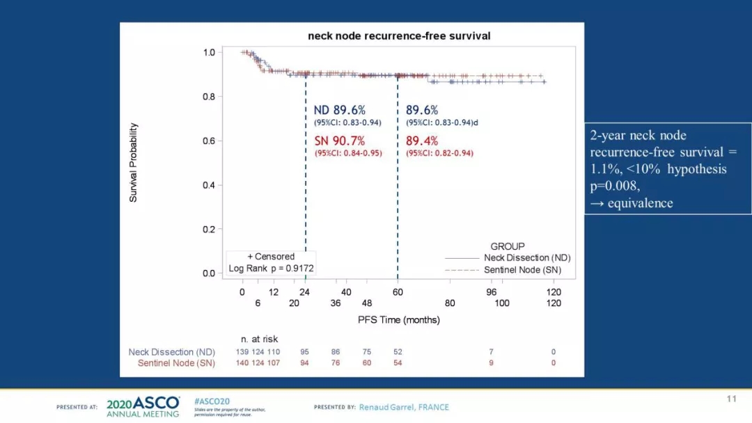 基于前哨淋巴结活检的治疗对比颈清扫术治疗可切除的T1-T2N0口腔和口咽鳞癌的等效性随机试验(Abstract 6501)