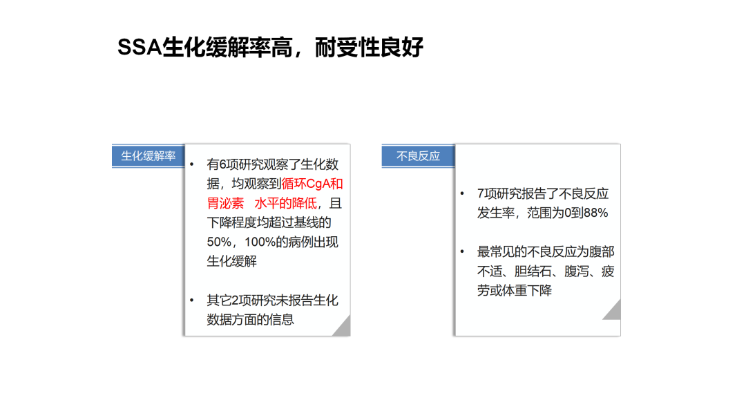 总体而言,SSA对于病灶多发或经常复发而不能通过内镜有效管理或切除的1型g-NENs患者,具有很好的缓解率和安全性。使用SSA 停药34个月后累积复发率为 30.2%。