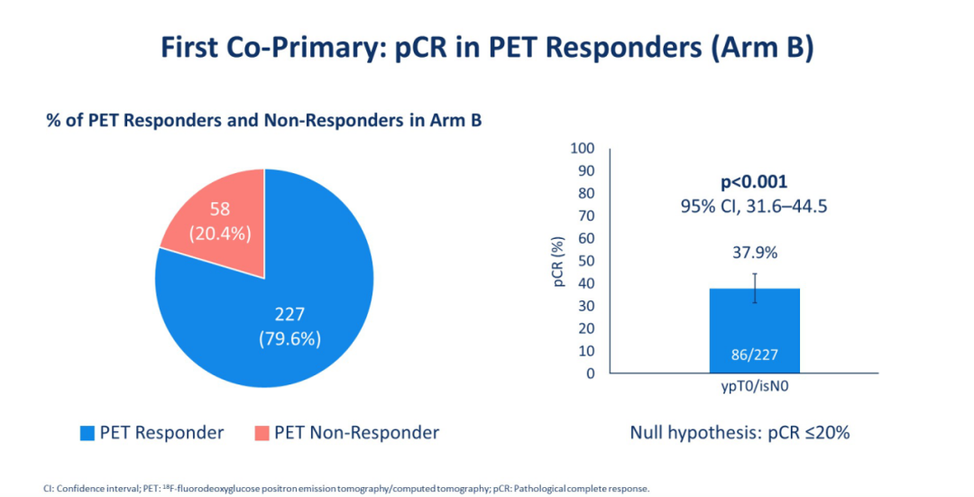 Prof.Cortes:其实我也无法确定用PET检查(与pCR适应性策略)是否可行,这项研究的另一个关键次要终点是每组患者的长期随访结果。如果这种策略可行(即患者达到“PET反应”或者由“PET反应”定义的pCR,可以考虑去化疗),我们才会进一步讨论是否用更经济的评估方法,比如超声或者MRI。
