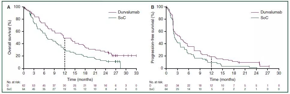 在既往经过多线治疗的晚期NSCLC患者,在PD-L1≥25%的患者,Durvalumab单药较标准治疗提高了PFS和OS;在PD-L1<25%的患者,双免疫治疗较标准治疗,仅能在数值上改善PFS和OS,安全性与既往报告一致。