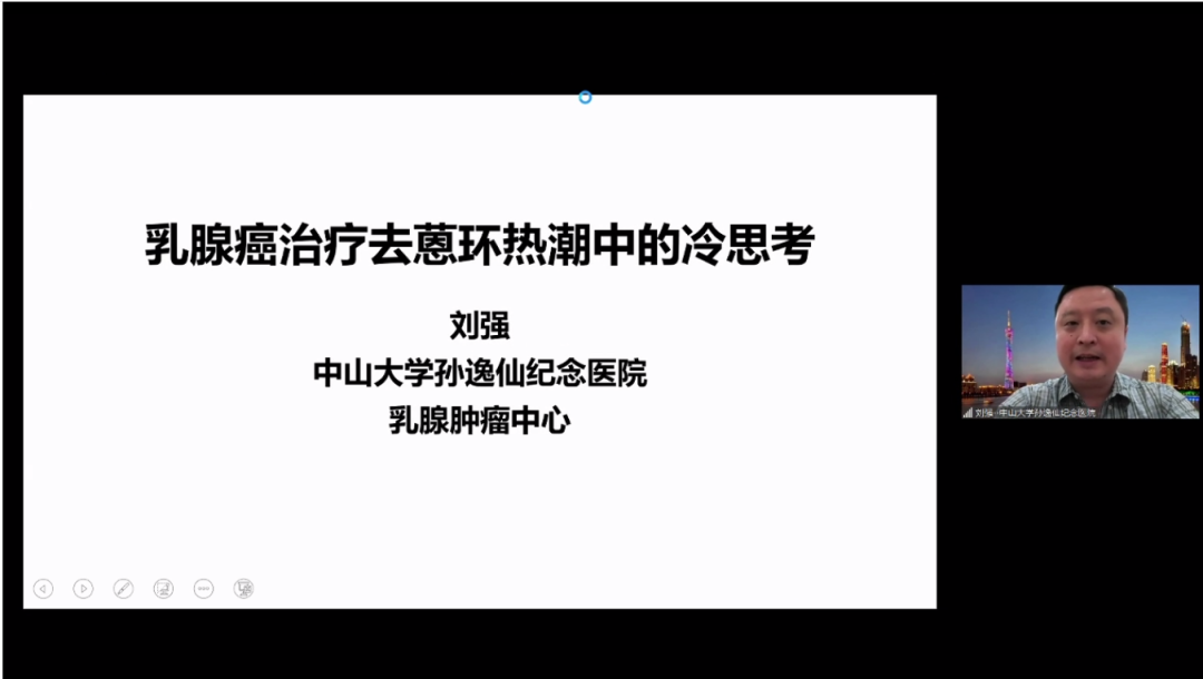 会议的最后,刘强教授对于今天的在线会议进行了总结,并对于参与专家表示了感谢。他表示关于Pagani教授对于年轻乳腺癌诊疗的介绍给中国同仁们提供了宝贵的思路,而针对ABC患者诊疗的热烈探讨促使大家深入思考CDK4/6抑制剂的合理用药和获益最大化。最后他祝愿大家都能从分享中获益,并期待下次与大家再次相聚于云端,共商患者治疗策略。
