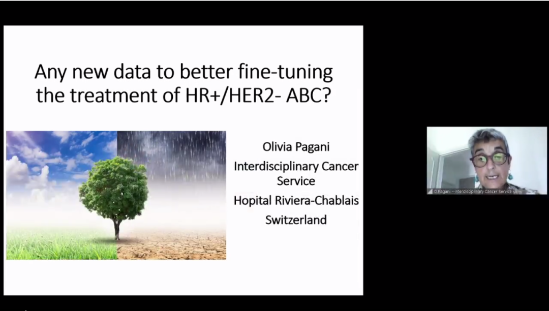 Pagani教授首先介绍了近期关于治疗HR+HER2-ABC的新证据、新观点和思路。ABC5会议的召开使ABC诊疗方式也发生了一些变化:首先,即使在存在内脏疾病的前提下,内分泌单药治疗或靶向联合内分泌治疗;其次,ABC5对于内分泌治疗的抵抗进行了详细的定义;还建议CDK4/6抑制剂联合内分泌治疗作为治疗ER+HER2- ABC的标准疗法,并根据MCBS评分确定了不同评分ABC患者的推荐治疗方式。